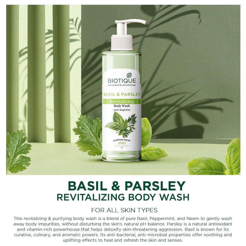 This revitalizing & purifying body wash is a blend of pure Basil, Peppermint and Neem to gently wash away body impurities, without disturbing the skin’s natural pH balance. Cleanses, softens and brings out the body’s natural brightness. Also contains coconut, castor oil & Indian soapnut.